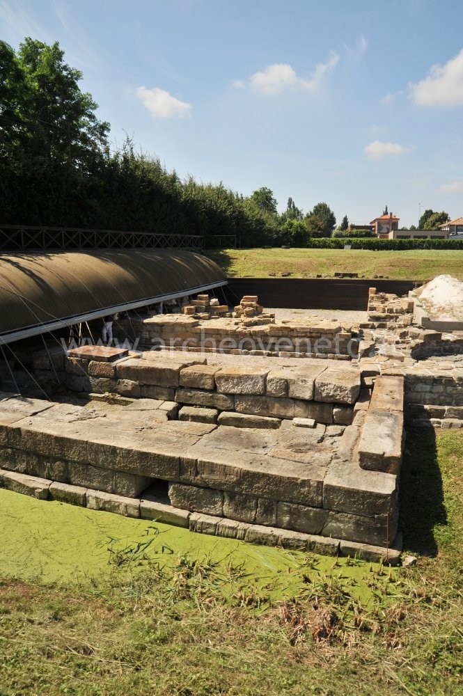 The archaeological area on the north of the Museum of Altino displays the remains of a Roman river pier (I century B.C. – I century A.D) constituted by a city gate flanked by short walls, by a landing place and by the connected warehouse. These structures were located within a block of 100 x 65 metres marked on the east by the “kardo” leading to the city gate; on the south by the “decumanus”, on the west and on the east by a channel.