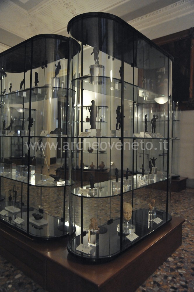 The first display case collects a series of small bronzes depicting Hercules and attacking warriors, a typical expression of the Venetian artistic culture between the 5th and 4th century B.C. In addition to them, there are also a war iron mesh from the 5th century B.C., some iron domestic tools from the 2nd-1st century and a pair of fist rings with bronze points from the 1st-2nd century A.D.