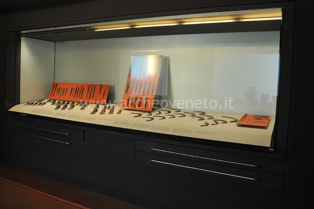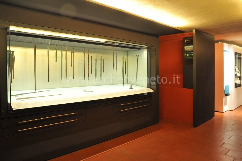 At the very entrance, on the left, there is a set of bronze and iron artefacts found in the Sile river and its surrounding area: spearheads, knives, axes, pins, a bowl and a situla, double-head knives and ingots, used to barter and in local metallurgic activities.