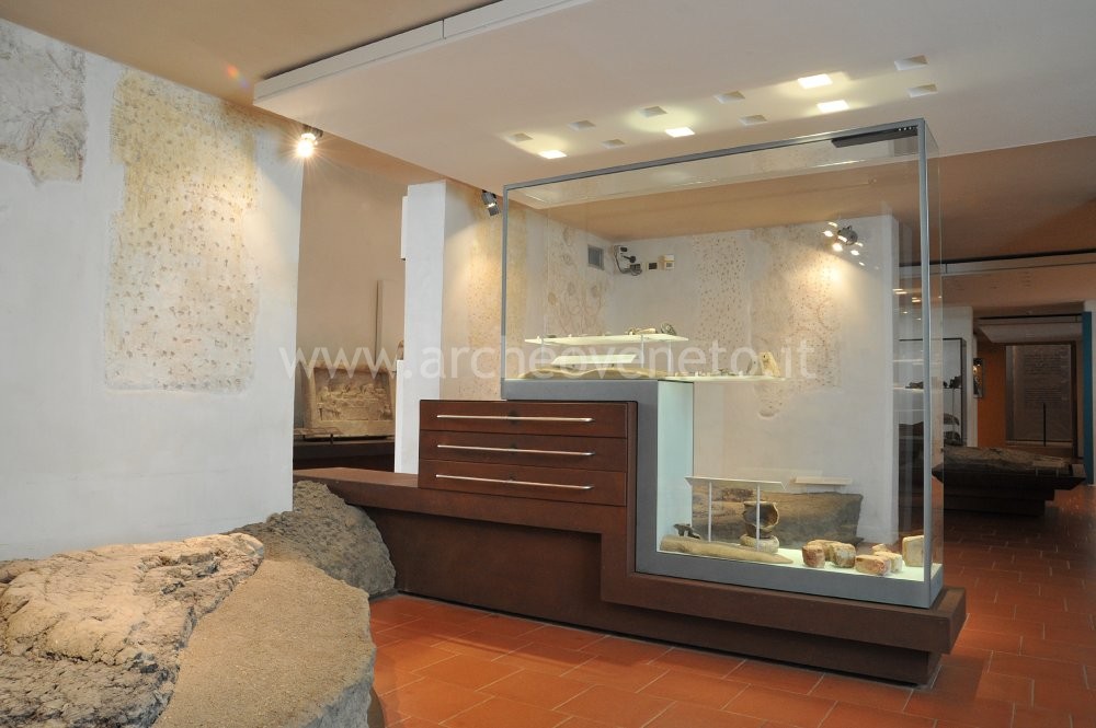 The Archaeological Section of the Civic Museum of Treviso, was recently remounted in “Santa Caterina”. It houses both the important archaeological findings originally collected by its founder, Luigi Bailo, and specimens discovered during the recent excavations carried out in the city of Treviso. The exhibition stretches over the basement and the ground floor and leads the visitor through a journey from the Palaeolithic period to the Roman Age, following a chronological order and, when possible, a topographic criteria. The museum displays the history of Treviso from its birth to the Roman Age, an innovative element of this new layout which proved to be very efficient from a didactic point of view. The exhibition is still to be completed with findings from the Late Antiquity, Byzantine and Longobard period.