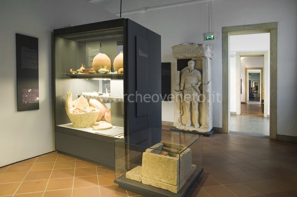 The last section of the room deals with the north-eastern span of the route of the road (via Altinate, via Belzoni, via Marzolo, via Orus, via Tiepolo and via Gradenigo), along which there was a wide funerary area. Interesting data come from the building of via Belzoni, where recent excavations (1995-95) have discovered a whole section is devoted to horse graves. The so called "stele of the Centurion", carved as a small temple, dating back to the Augustan Age and discovered in via Orus, is particular: the monument has a niche wholly occupied by the standing figure of the dead (Minucius Lorarius, centurion of the legion Martia).