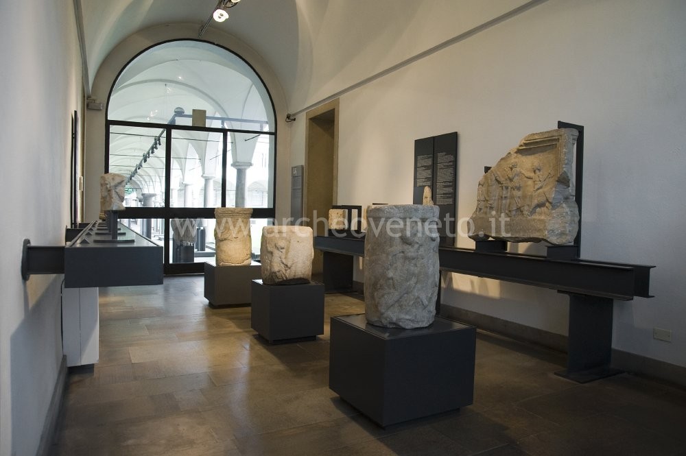 In 1994 it was set and re-ordered, in the main cloister of the old convent, the collection of Roman architectural sporadic finds discovered in the city centre of Patavium (mostly in the Pedrocchi-Cavour area, where the forum and the port were located). The exposition shows the main Roman architectural orders in their basic components: columns, capitals, lintels, friezes and frames. The lapidary displays a rich didactic and illustrative arrangement, with stylistic and typological information. Among the exposed finds it is noteworthy an arm frieze discovered in Riviera Tito Livio, which probably was part of a temple.