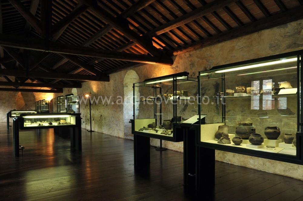 The archaeological section is located on the first floor of the building and contains a chronological and topographic exhibition of the finds collected in the alluvial plain created by the river and which can be traced back to a time span stretching from the late Neolithic to the Roman imperial age.