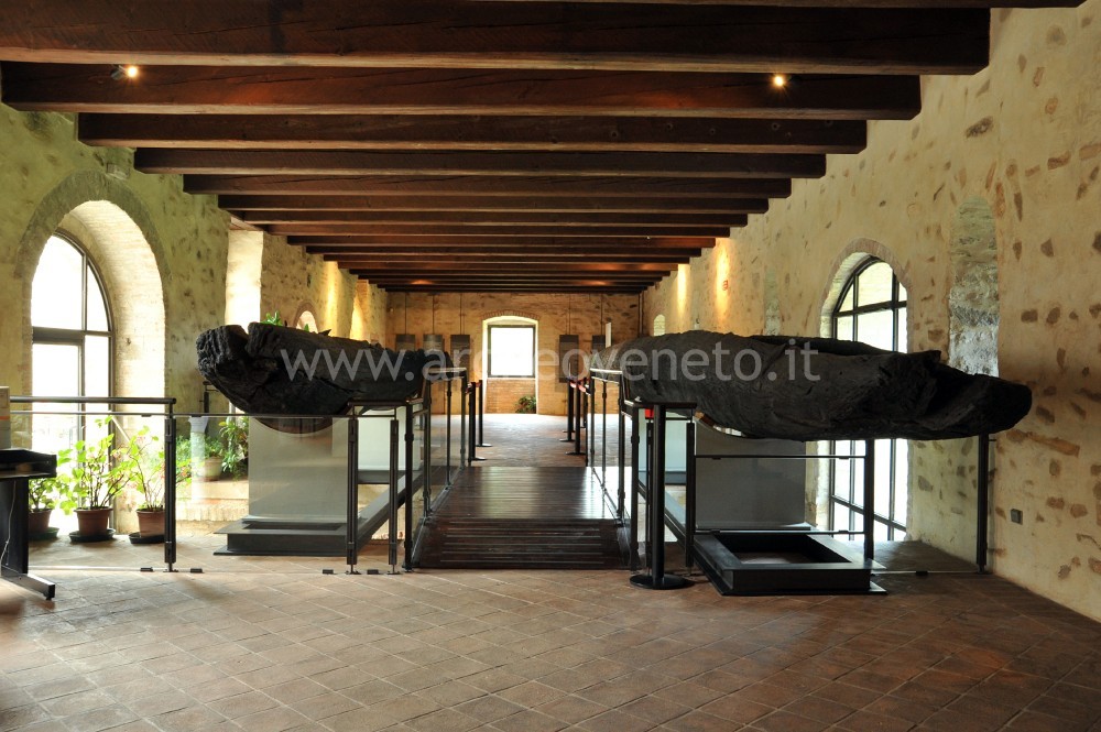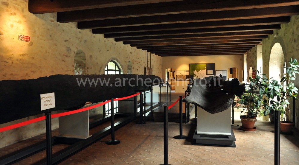 The large room on the ground floor hosts two large single-trunk oak pyrogues of the Early Middle Ages found in 1972 in the bed of the Bacchiglione river, near the Selvazzano bridge. Together with a large hydrographic map of the local fluvial system, the pirogues provide important information on the socio-economic activities carried out in the region, on the patterns of the human settlements in the area surrounding the river and on the hydrographic evolution of the land, in particular from the late Antiquity on.