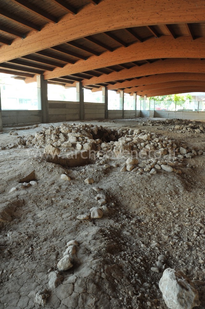The archaeological site at Sovizzo is a religious and funerary complex of the Copper age. The site comprises three stone cairns (big, medium and small) preceded by a stone corridor. The corridor is also made of stone; it has an apse and it is divided in two by a further central row of stones. Three cairns have been excavated and have allowed the recovery of two burials: one of a two or three years old child, the others of young persons. The complex ends with scattered pebbles and stones where pottery fragments, stone tools and flint manufacture wastes have also been found.