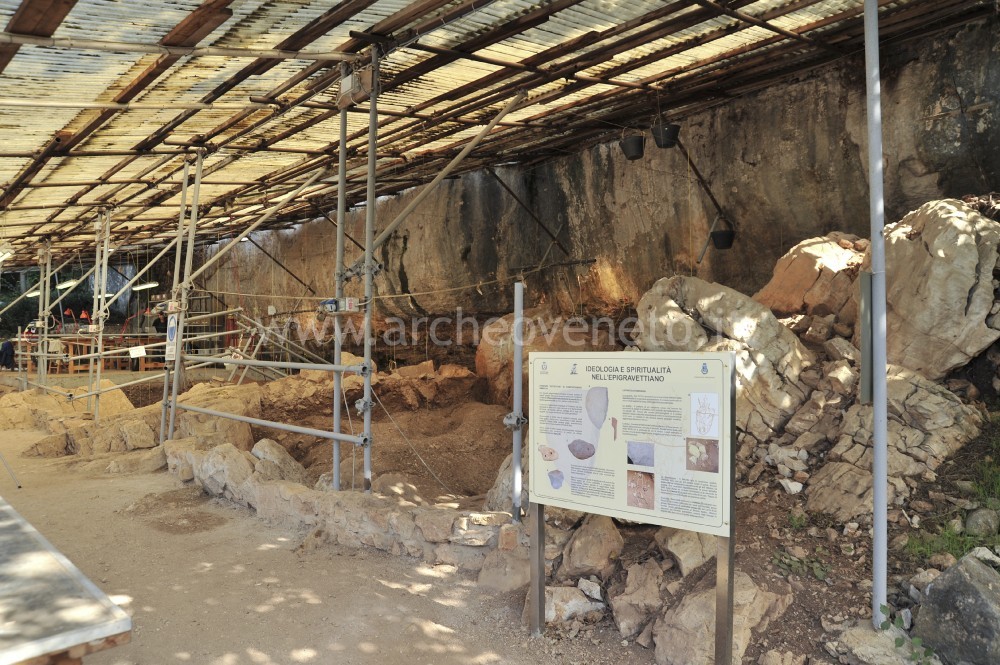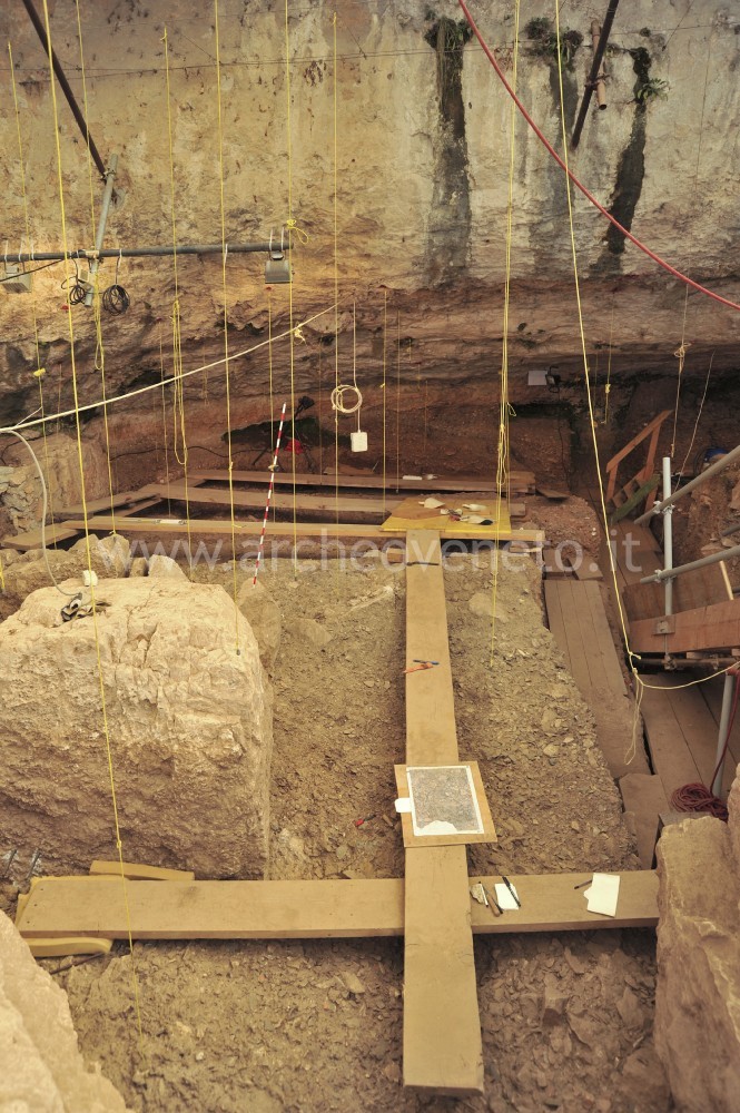 The most recent deposit refers to the end of the upper Palaeolithic and is characterized by stone tools belonging to the end of the final Epigravettian (13.500 - 10.000 years ago). The naturalistic data indicate a vegetation typical of dry and cold climates, progressively followed by one of warmer climates with grasslands and conifer and deciduous plants. To this phase pertain some living areas, particularly a burial grave and some art pieces. For this reason the site is of fundamental importance for understanding the middle Palaeolithic and the final part of upper Palaeolithic.