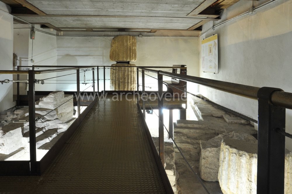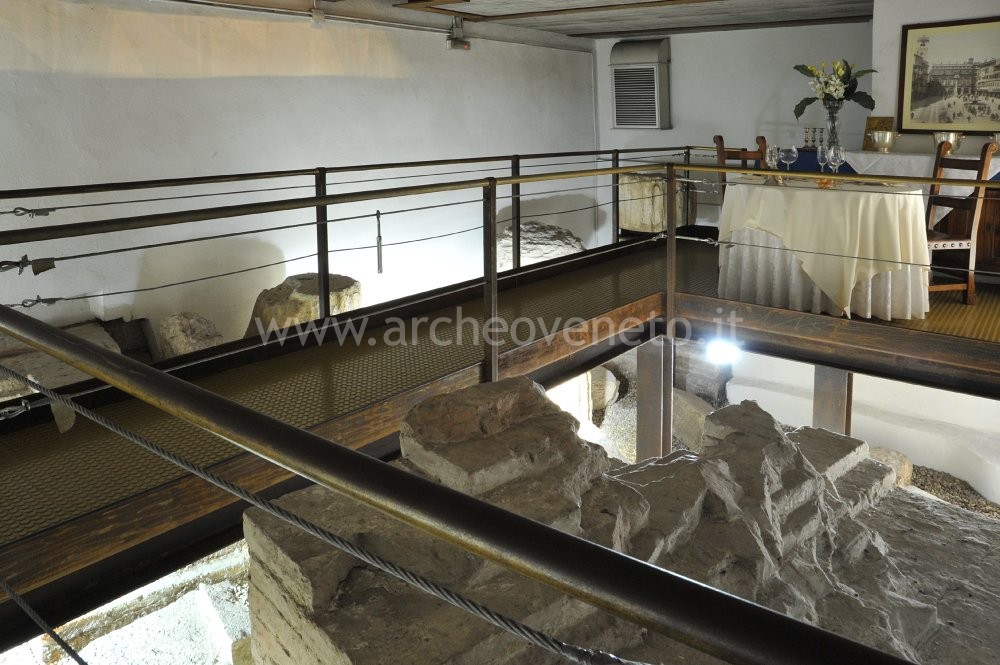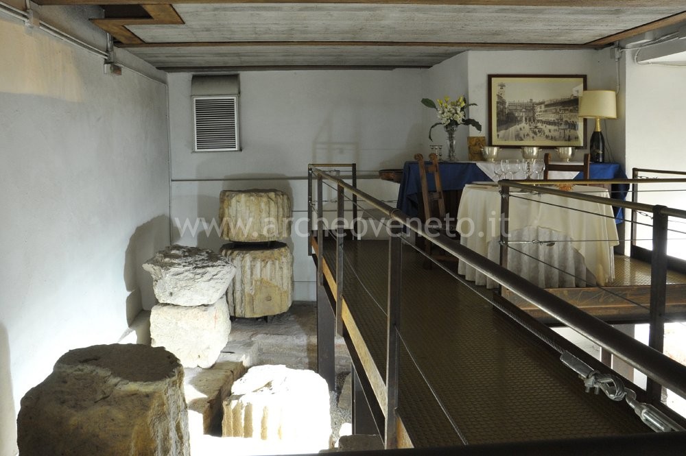 The archaeological area in the basement of the “Maffei” restaurant conserves some remains of the Capitolium of Verona, the temple dedicated to the Capitoline triad (Jupiter, Juno and Minerva). The temple was located on the north-western short side of the forum and along the road “Via Postumia”. And it was built around 50 B.C., in a moment of overall urban renovation of Verona. The temple had been built over a large artificial terrace that raised 2 metres above the ground level, which was surrounded on three sides by a porch and which could be accessed through stairs. In the middle of this terrace, on a further podium 42 metres long and 35 metres large there was the Capitolium. The temple was rectangular shaped and of Tuscan order. It was divided into a “pronaos”, with three rows of 6 columns each, and into three deep cells of various dimensions where Jupiter, Juno and Minerva were worshipped. Of the Capitolium of Verona today it is possible to see the remains of the foundations of the “pronaos”, namely some brick blocks that supported the columns of the temple above.