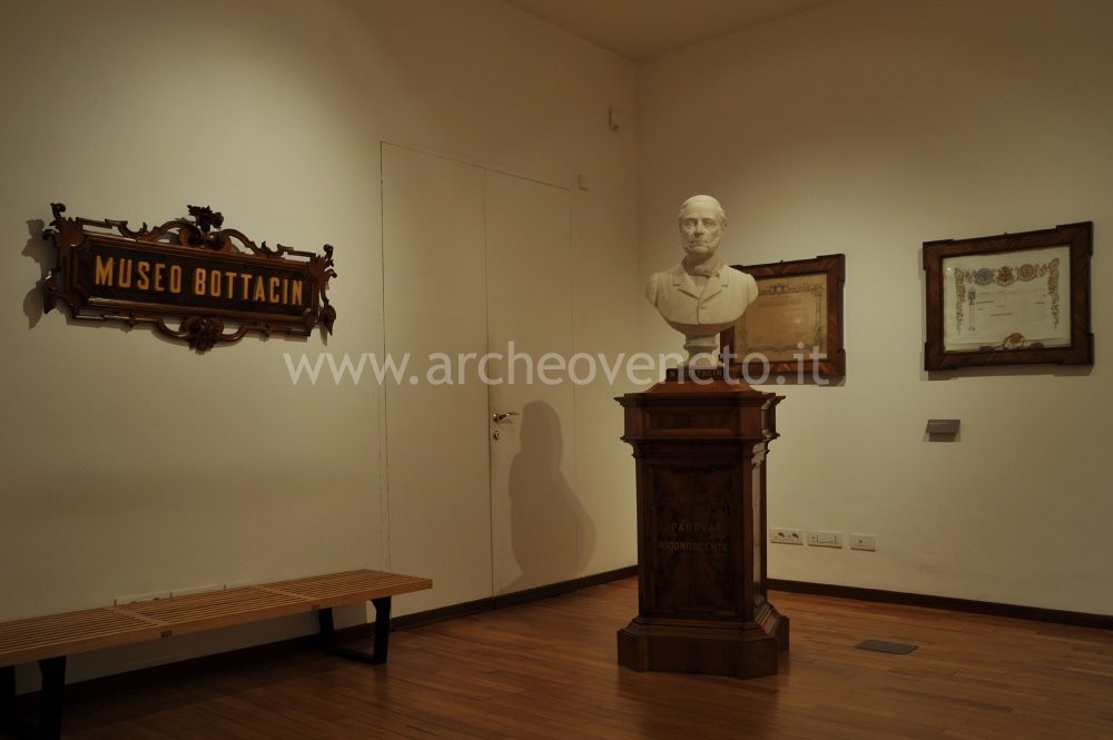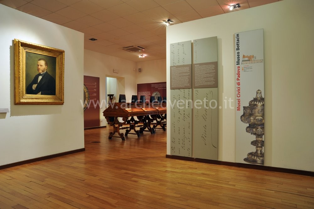 The room serving as entrance hall of the museum has the task of providing information on the magnate Nicola Bottacin. Beside the description of the life of the wealthy trader, it is possible to see a portrait dating back to 1896 and a bust, both accomplished by Cameroni. The rest of the exhibition is organised along two paths, one regarding the works of art and the other one devoted to numismatics.