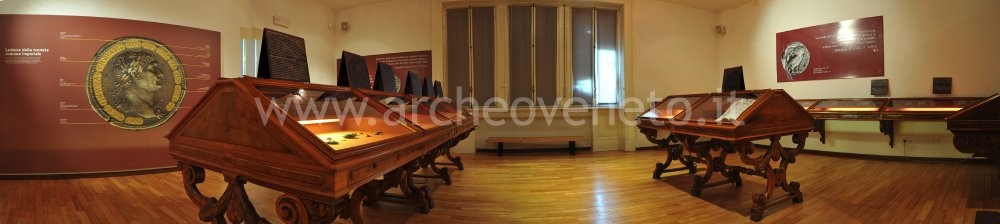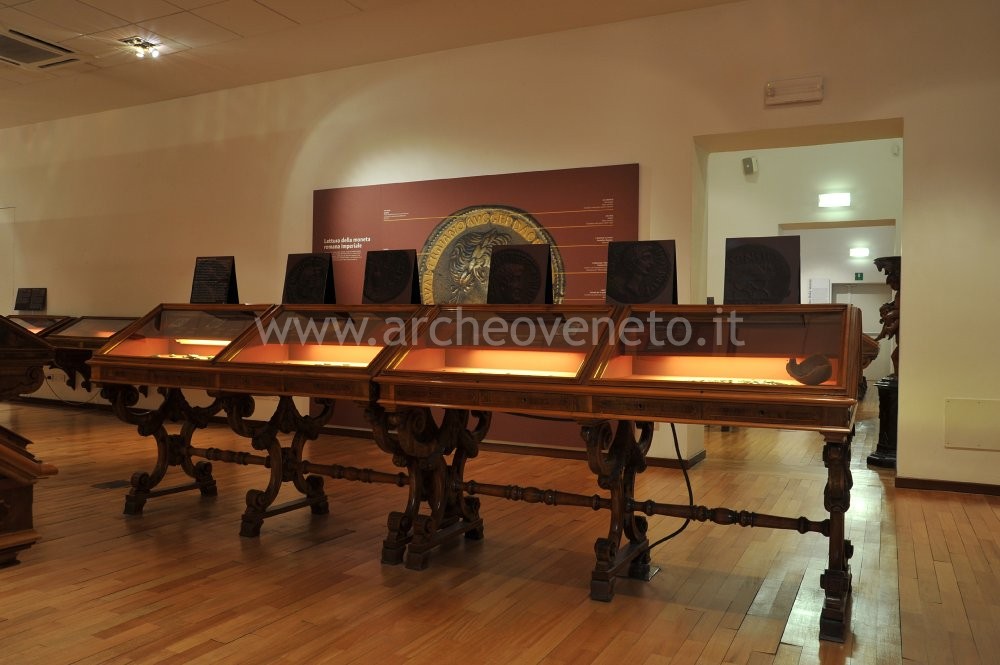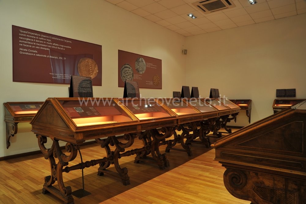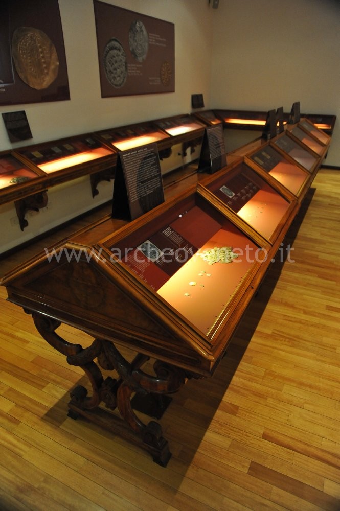 This room contains the monetary finds dating back to the Middle-Ages and the modern age, with a particular focus on the mints of the Veneto region. All the coins displayed, like the Greek and Roman ones, are accompanied by an introductory panel providing general information on the events happened throughout the centuries and by a set of detailed captions.