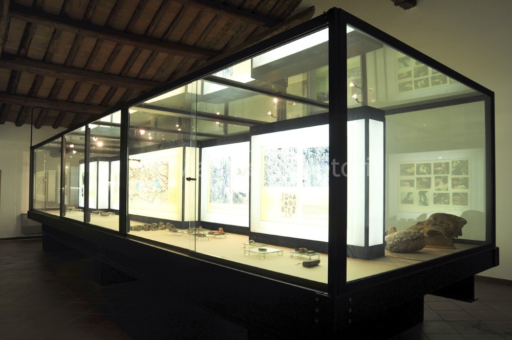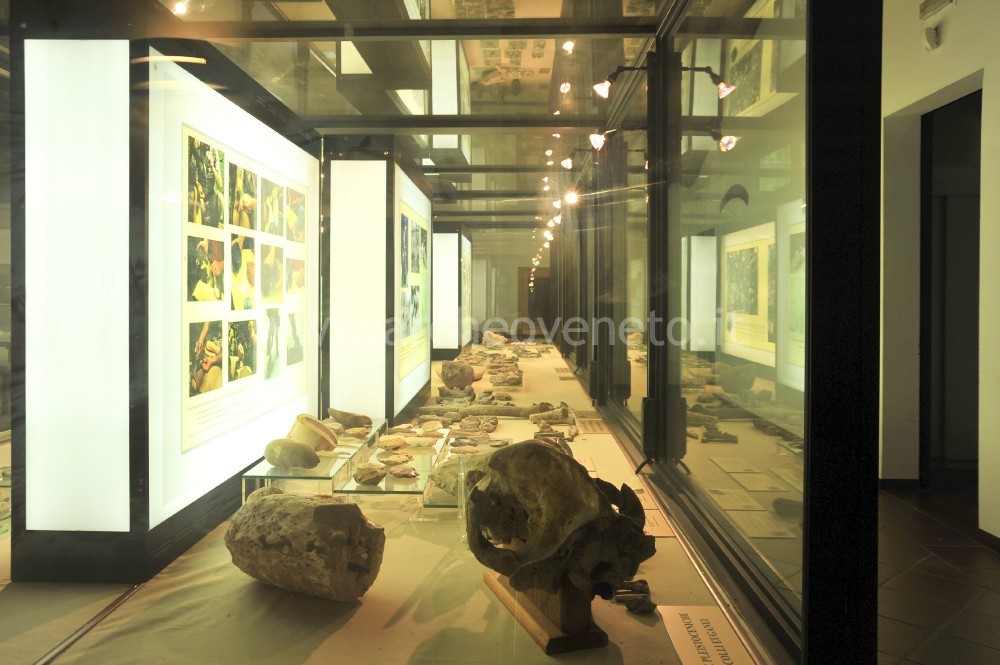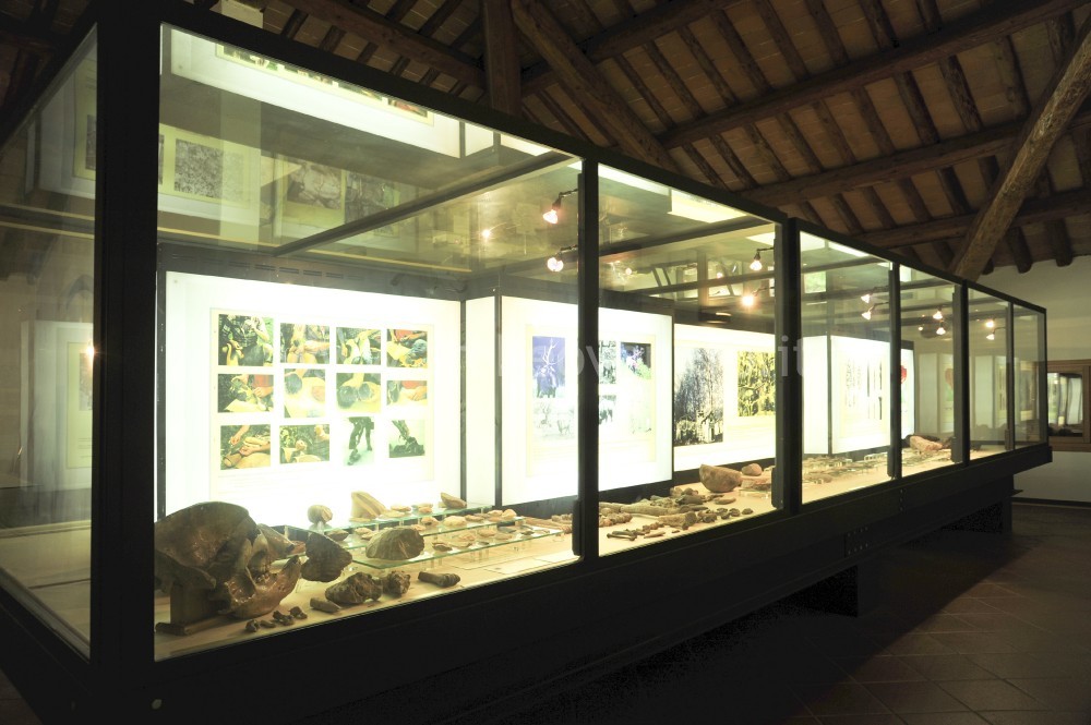 From the library it is possible to reach the Room of the ancient colonization, which has to be accomplished yet. At the centre of the room, there is a large display case (11 metres long), which contains numerous prehistoric finds from the area near Stanghella. The purpose of the display case is showing the climatic and environmental changes that have influenced the settlement in the Bassa Padovana, better to understand the patterns of the ancient colonization of this area in relation to the material found in the eneolithic sites. The most representative site of the Copper age is Selva di Stanghella, where it has been possible to find a remarkable amount of flint artefacts, worked bones, arrowheads and querns. Thanks to the richness of the materials discovered, this site can be considered one of the largest and the most important settlement in Veneto in this period. Throughout the museum, the visit will be supported by panels addressing the following topics: the different chipping techniques used for hard stone and flint, the Holocene and Pleistocene fauna of the Euganean hills, the hypothetical reconstruction of a village of the Copper age, the map showing the distribution of the Neolithic and Eneolithic sites in Veneto.
