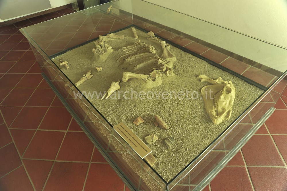 Shortly a section will be set up in the last part of the room, which will be devoted to the pre-roman and roman period (in Veneto). It will display finds mainly coming from necropolises and burial grounds. At the moment it is possible to see a display case, which shows the burial of a horse from the site Boica di Solesino.