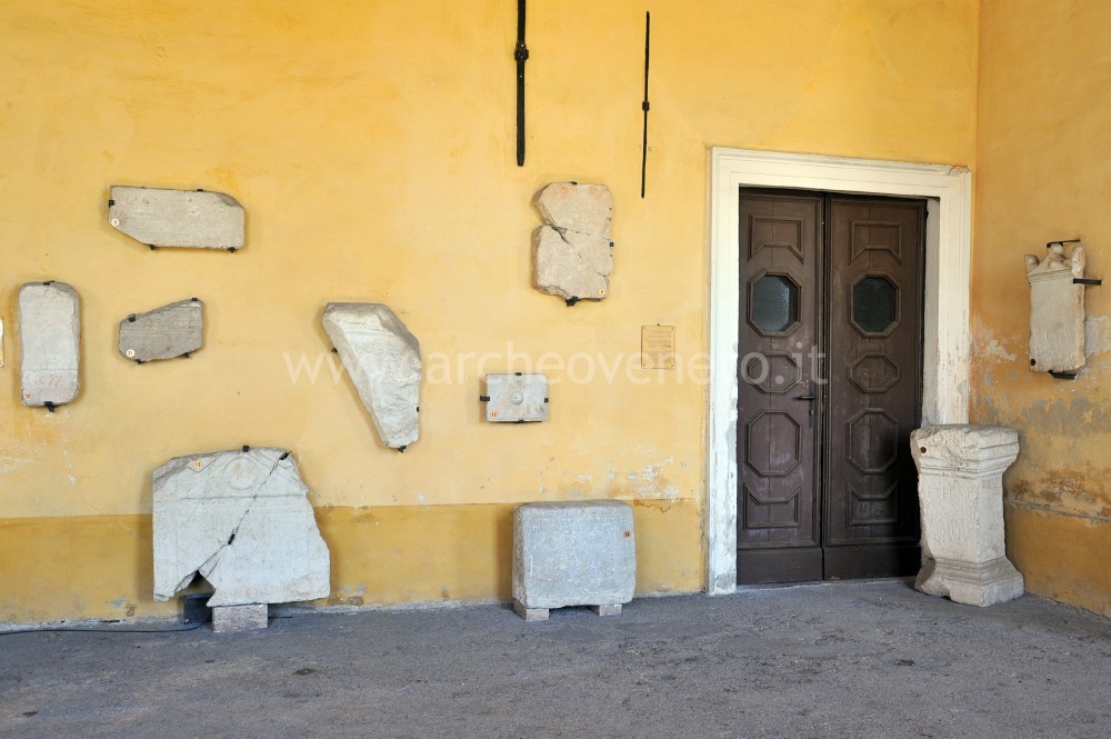 The collection includes inscribed gravestones, fragments of architectural decorations, commemorative, votive, sepulchral and public inscriptions coming different areas and periods. The first twenty epigraphs come from Greece, in particular from Corfu and other Ionic islands and were taken to Venice during the hegemony of the Most Serene Republic of Venice in the eastern world. The most significant items are the fragment of the base of a statue of Hadrian from Abea (in Messenia), a bilingual funerary inscription (in Greek and Latin) from Leukadià, placed on the grave of Aulo Cossinio Philocrates, which bears witness to the phase of the Roman conquest, a marble stele, on which a decree by the Athenian assembly of the 2nd cent. B.C. is engraved, and finally a large quadrangular base, which had to possibly hold the female statue representing a Greek priestess turned to the imperial cult.