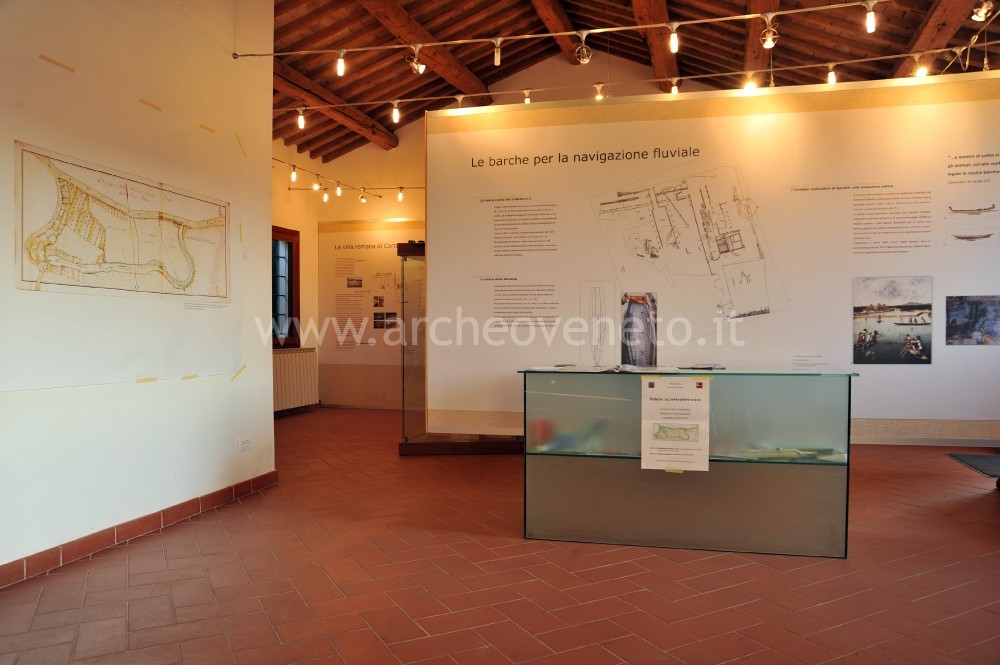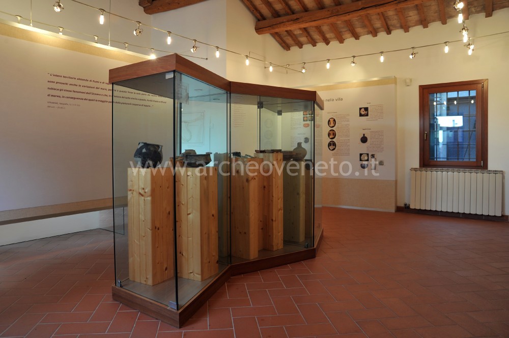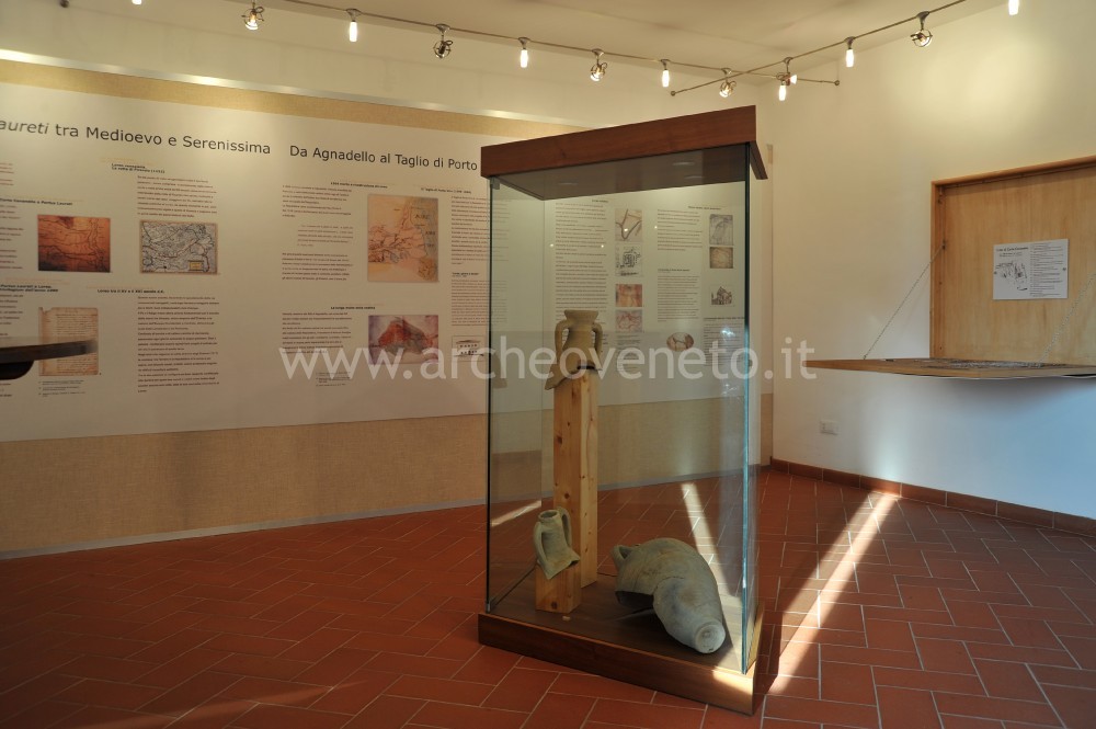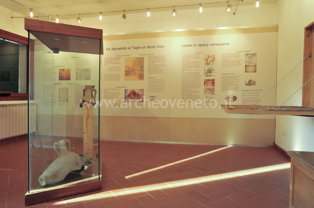 The first room is provided with panels that explain the history of the area surrounding Loreo; there are three display cases containing the finds of Roman origin discovered in the country dwelling of Corte Cavanella. The large Roman villa was probably located on an elevated “barena” (salt meadows typical of the Lagoon environment), next to a canal that connected it to the sea. Its particular position influenced its building (it was necessary to adopt different building techniques) and the duration of its life, which started in the early 1st cent. A.D. and ended in the early 5th cent. A.D. Its importance basically depends on its specific position, which enabled it to play a strategic role in the trade by sea (or river) and land. The villa can be identified with the Mansio Fossis mentioned in the ancient routes, as a stopping place for travellers going northwards along the via Pompilia.