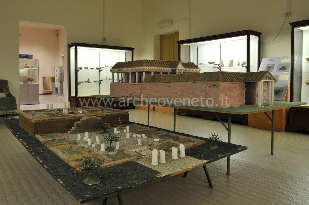 At the centre of the room, there are two large scale models reproducing the presumed elevation and the excavation of a country villa typical of northern Italy.