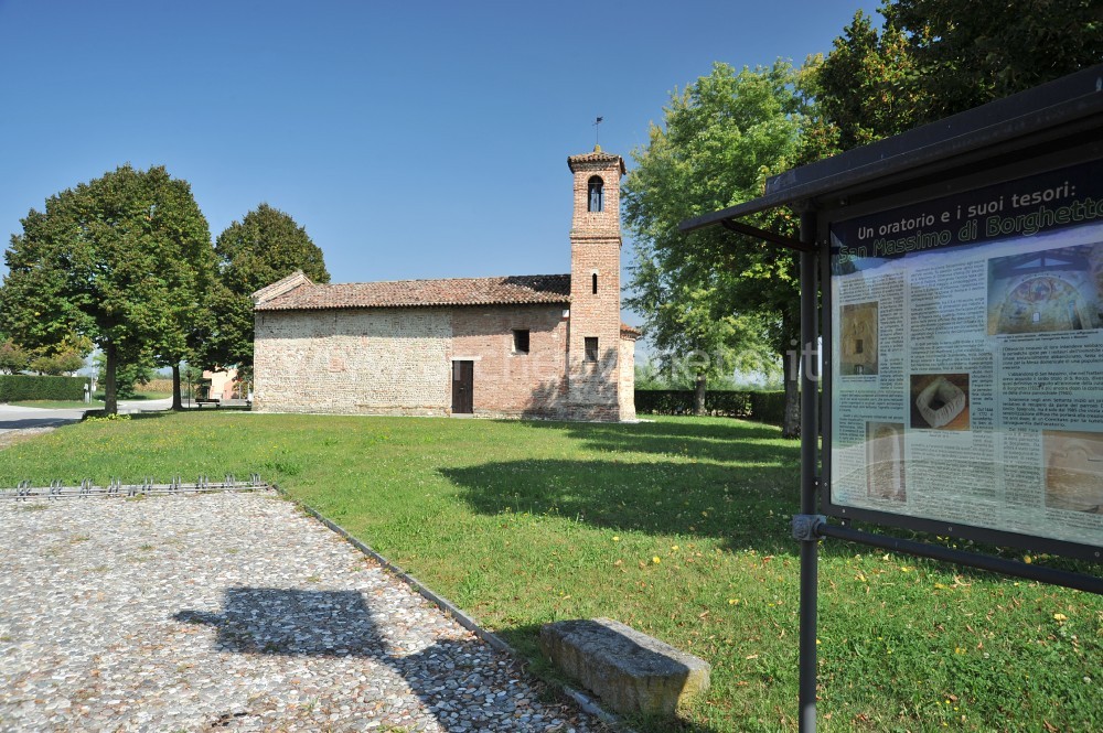 The oratory of San Massimo is located in the heart of the countryside of the Alta Padovana (northern area of the province of Padua). The first worship place is likely to date back to the pre-Christian era. The Roman building was then possibly replaced between the 7th and 8th cent. by a first permanent Christian worship place. The small museum in Borghetto is particularly important, since it displays the finds discovered on site; indeed all the items come only from the excavation carried out in the early 70’s near the small oratory.