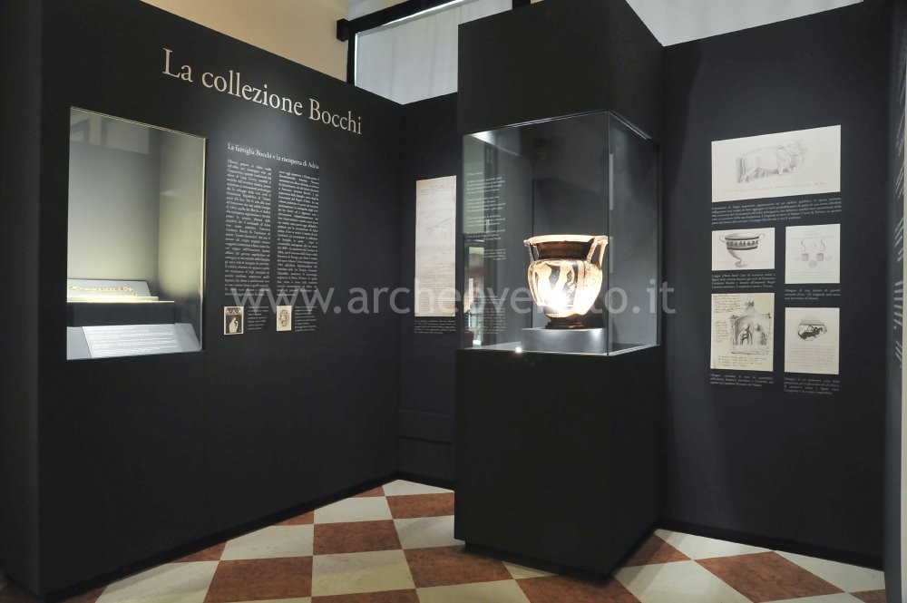 The core of the exhibition is the ‘Bocchi collection’, founded between the 1800s and the 1900s thanks to extensive work of a noble Adria family. In particular it was Francesco Antonio Bocchi that organised the excavation works, collected, filed and studied the material hence protecting it from being scattered around. To ensure an adequate presentation of both that collection and other findings gathered during the excavation works in the 20th century, the Museum of Adria was constructed. The museum was designed by an Adria architect and engineer Giovanni Battista Scarpari and architect Ferdinando Forlati, currently Supervisor of the Veneto Monuments. The Museum was opened in September 1961 as a Civic Museum and then passed onto the State in 1972, gaining national recognition. Between 2000 and 2009 due to growing number of exhibits that needed adequate preservation and presentation and because of the introduction of new safety and accessibility regulations the Museum was expanded and completely refurbished.