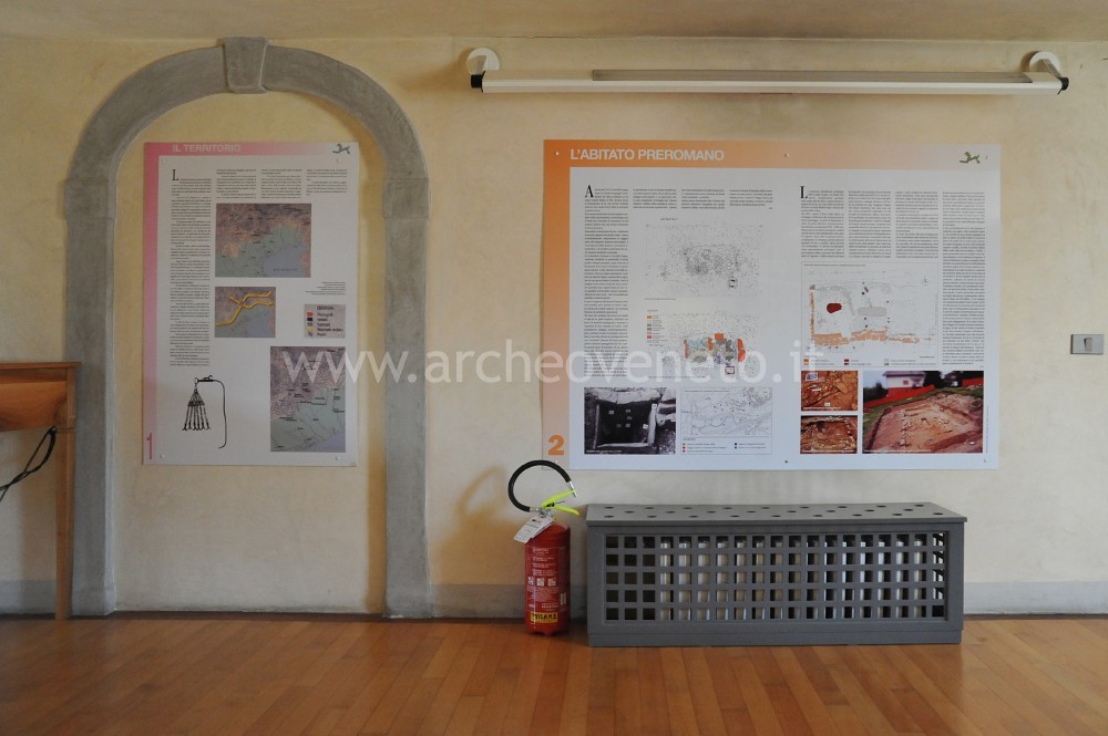 Nell’ambiente di ingresso del museo si possono trovare allestiti alcuni supporti introduttivi. Gli stessi riportano informazioni sul territorio, sui materiali e sulla necropoli preromana di Mel. Ad accompagnare queste informazioni sono proposte anche alcune riproduzioni dentro una vetrina e delle ricostruzioni, in scala inferiore, di una delle grandi tombe a tumulo (i cosiddetti “circoli”).