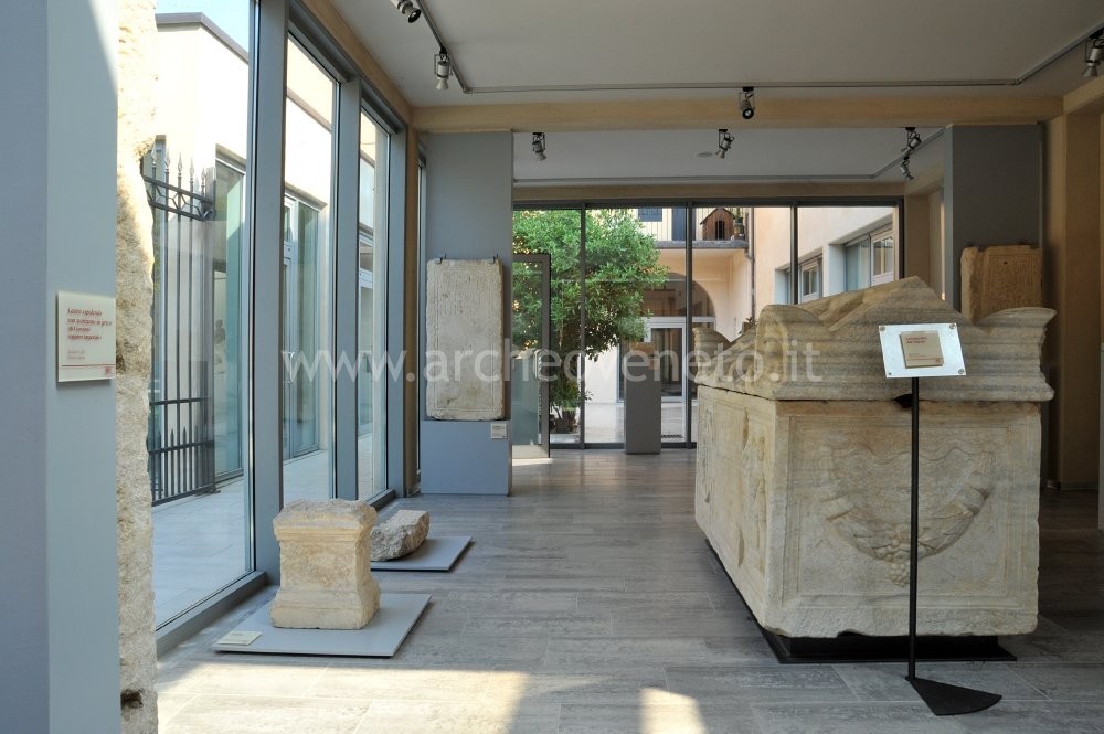 Nella sala, al centro della quale si distingue il bel sarcofago “delle Stagioni” in marmo bianco proconnesio (II sec. d.C.), sono esposti un frammento di fronte di sarcofago strigilato (V sec. d.C.), un’anfora integra di tipologia "Dressel 6A" (fine I sec. a.C.-I sec. d.C.), un’ara anepigrafe in pietra tenera, tre elementi di cornice con ghiera a dentelli in calcare, la ricostruzione di una sepoltura “a cappuccina” tardoantica e varie testimonianze epigrafiche. Tra queste si segnalano tre lastre funerarie in pietra tenera datate tra il V e il VII sec. d.C., delle quali due in latino e una in greco (quest’ultima menzionante Giovanni, coppiere imperiale).