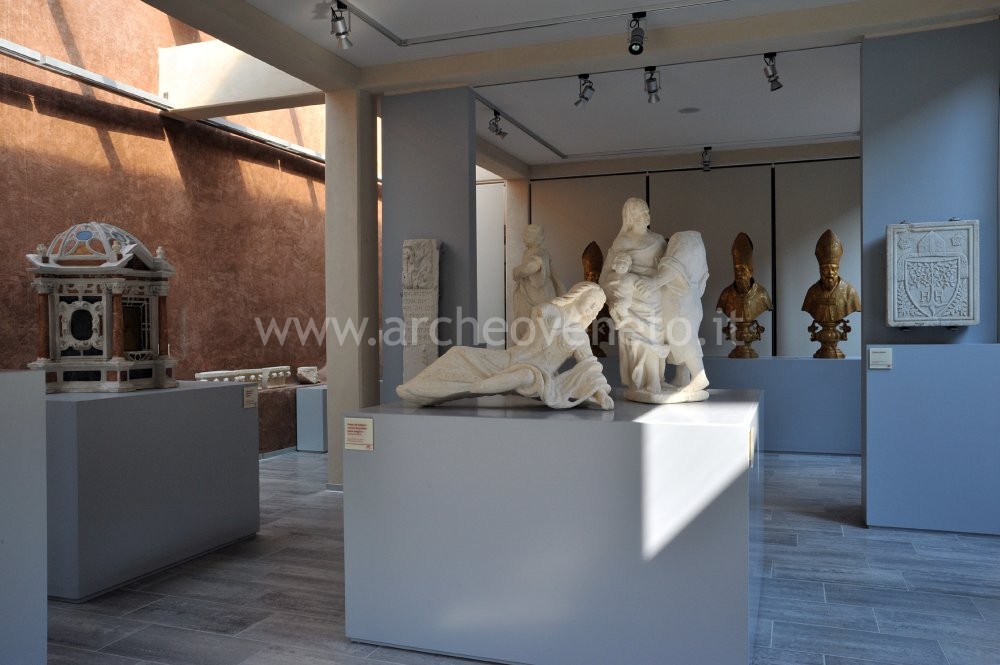 La parte conclusiva della sala ospita elementi architettonici di età medievale.