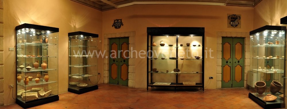 All’interno della prima vetrina sono posti due grandi contenitori fittili utilizzati per derrate alimentari, rinvenuti presso la Muraiola: un vaso biconico con anse caniculate sul punto di massima espansione e un orcio con anse a nastro verticale.