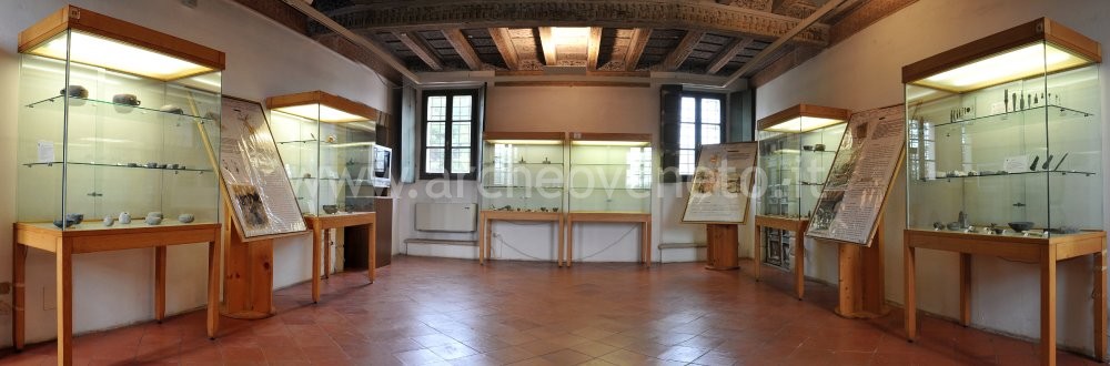 La terza sala è destinata ad ospitare le testimonianze dell’età del Ferro e di età romana scoperte in diverse località del poveglianese, quali Ortaia, Isolalta, Crocetta e Madonna dell’Uva Secca.