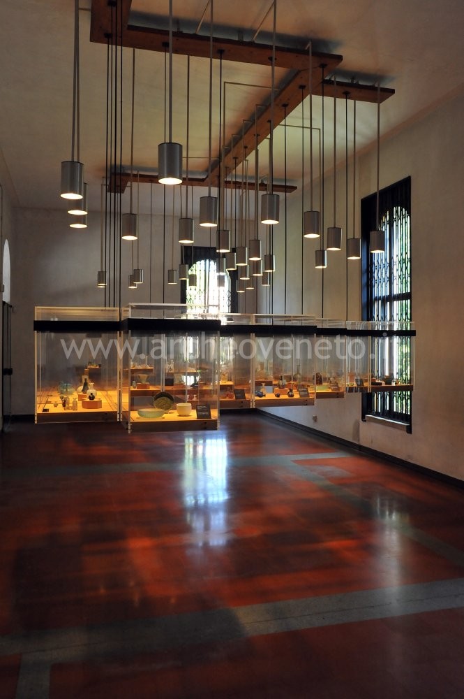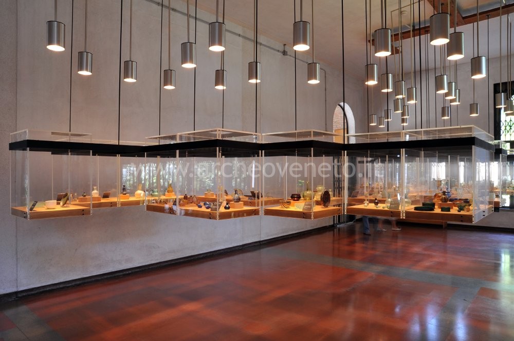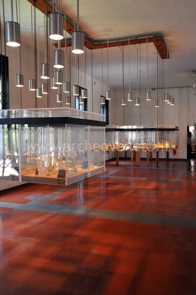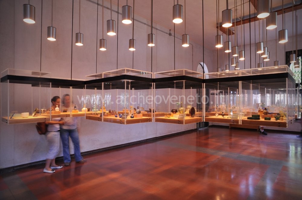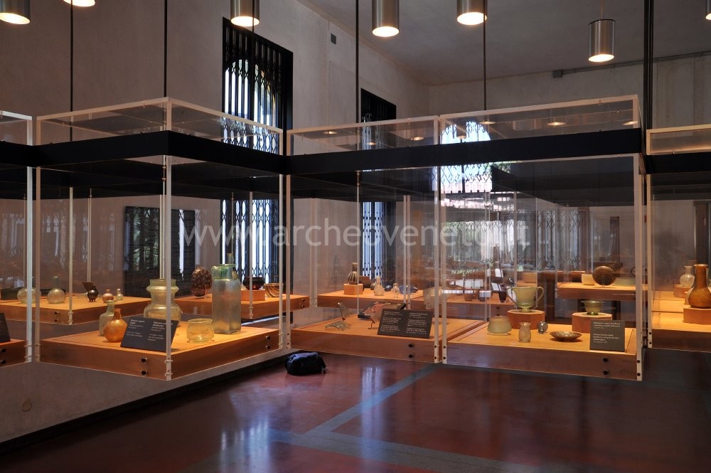 Il Museo del Vetro è ospitato nell’antico Palazzo dei Vescovi di Torcello, divenuto sede museale nel 1861 dopo essere passato al Comune di Murano. Inizialmente limitata alla sala centrale del piano nobile, la collezione si ampliò progressivamente venendo ad occupare spazi espositivi sempre più vasti all’interno dell’edificio. Con la soppressione del Comune di Murano, nel 1923, il museo venne a far parte dei Musei Civici di Venezia. Un riordinamento generale della collezione avvenne nel 1932. La raccolta archeologica, riallestita nelle forme attuali all’inizio degli scorsi anni ’80, comprende manufatti in parte appartenenti al nucleo originario del museo, in parte pervenuti dai depositi della Soprintendenza Archeologica nel 1936 (lascito Levi) e nel 1963 (vetri del Museo di San Donato di Zara, assegnati all’Italia in seguito ad un accordo postbellico con la Jugoslavia).