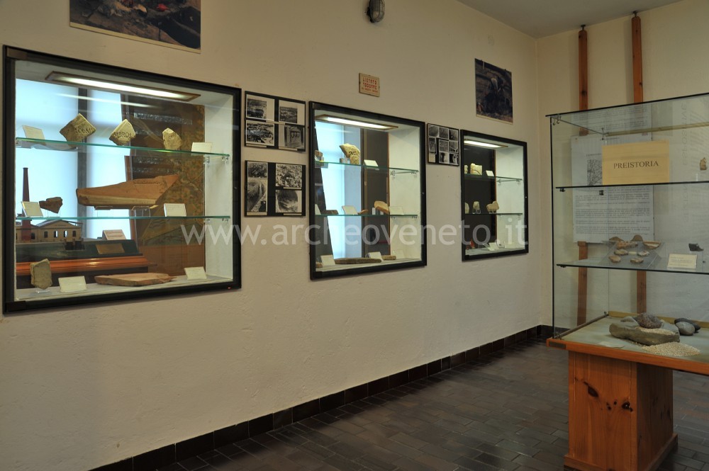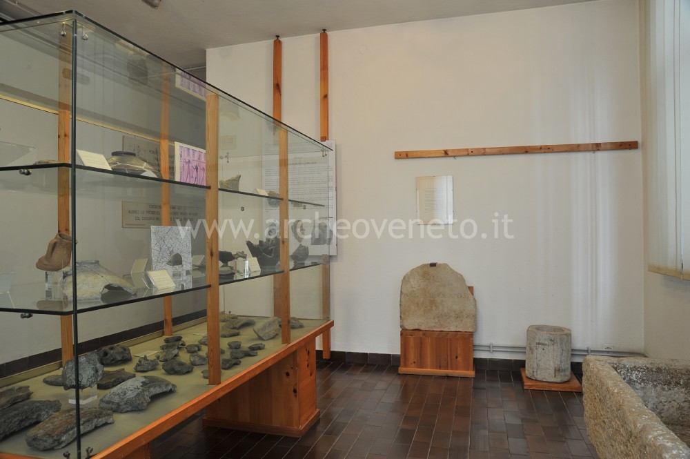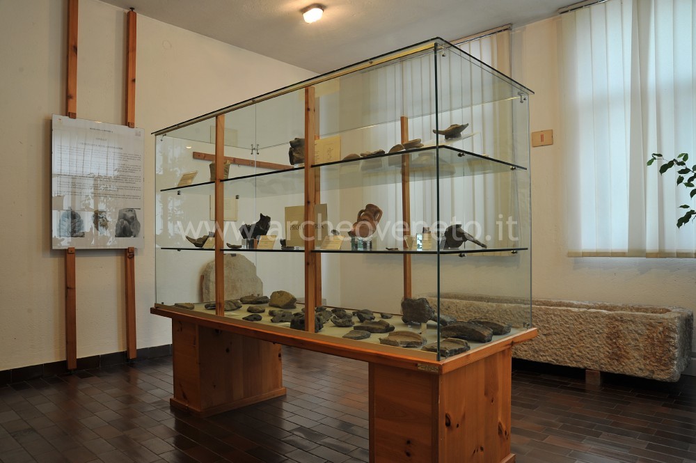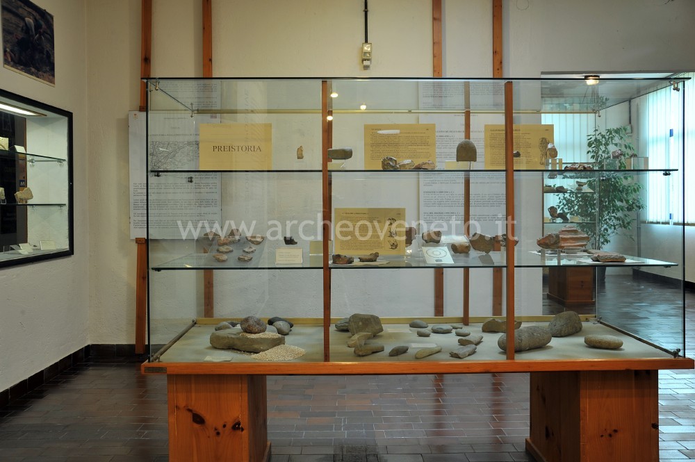 La più antica frequentazione avvenne durante il Mesolitico (8000-4500 a.C.), epoca in cui furono prodotti i numerosi manufatti litici, in osso e corno raccolti all’interno della vetrina posta al centro del vano; tra questi ricordiamo un lisciatoio e un percussore in pietra verde (da Formighè), bulini, grattatoi, punte, lame, due esempi di corna di cervidi lavorate e un osso usato come strumento a punta.