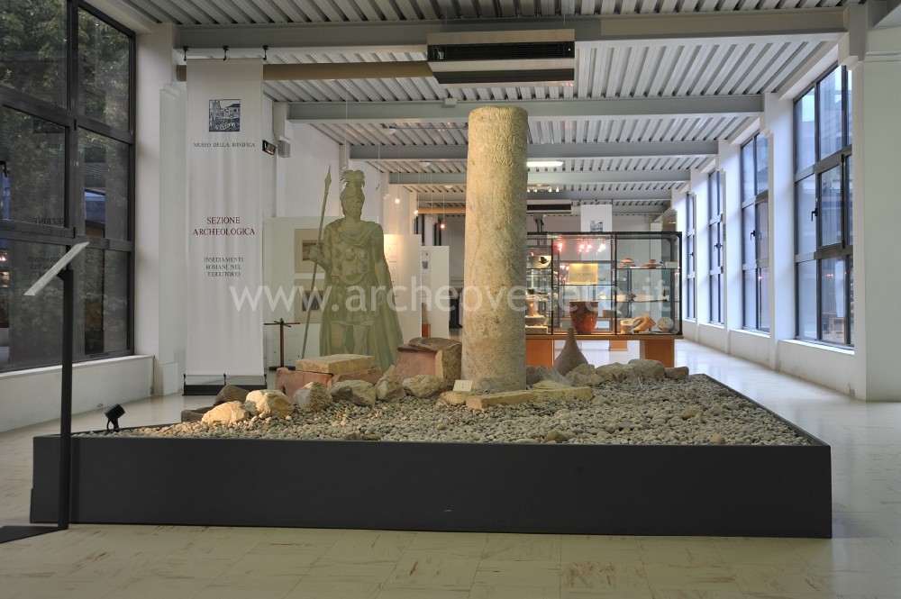 Al centro della sala spiccano una ricostruzione delle diverse tipologie di sepolture in uso durante il periodo romano (entro anfora segata, “alla cappuccina”, entro cassetta di laterizi ed entro cista calcarea) e una riproduzione dei diversi strati che compongono le strade romane. Si segnala anche la presenza di un miliare rinvenuto al lato della via Annia, in località Fiorentina, con dedica a Valentiniano II, Teodosio I e Arcadio (388 d.C.).