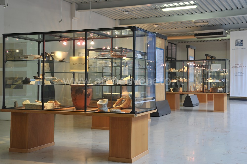 Il percorso prosegue con una vetrina che espone le testimonianze scoperte in località Fossà; tra queste segnaliamo ciotole in ceramica a vernice nera (III-II sec. a.C.), olle in ceramica grezza da cucina (I sec. d.C.), bicchieri e ollette a pareti sottili (I-II sec. d.C.), diversi esempi di ceramica sigillata nord-italica (I sec. d.C.) e africana (IV sec. d.C.), tegole con bolli (I-II sec. d.C.), due esempi di lucerne “a canale chiuso” e un collo d’anfora olearia “Dressel 6” con tappo (I-II sec. d.C.). Accanto agli oggetti in terracotta sono presenti anche una punta di lancia in ferro temprato (III-IV sec. d.C.), frammenti di coppe e balsamari in vetro soffiato (I-II sec. d.C.), un tintinnabulum (campanellino) in bronzo (I-II sec.d.C.), una fibula “ad arco” in bronzo, punte di freccia in ferro (III- I sec. a.C.) e un mortaio in pietra.