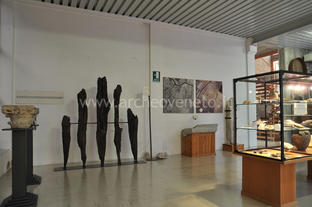 All’interno della sala vi sono anche tre vetrine che espongono materiale ceramico di epoca romana, proveniente da Cittanova (tegole bollate, bolli laterizi, frammenti di ceramica sigillata gallica e africana e un frammento di tessera in piombo), da Grassaga, località S.Teresina e fondo Giol (tegole bollate e bollo laterizio romano) e da San Donà di Piave, località Fiumicino e Cà Treviso (bolli laterizi).