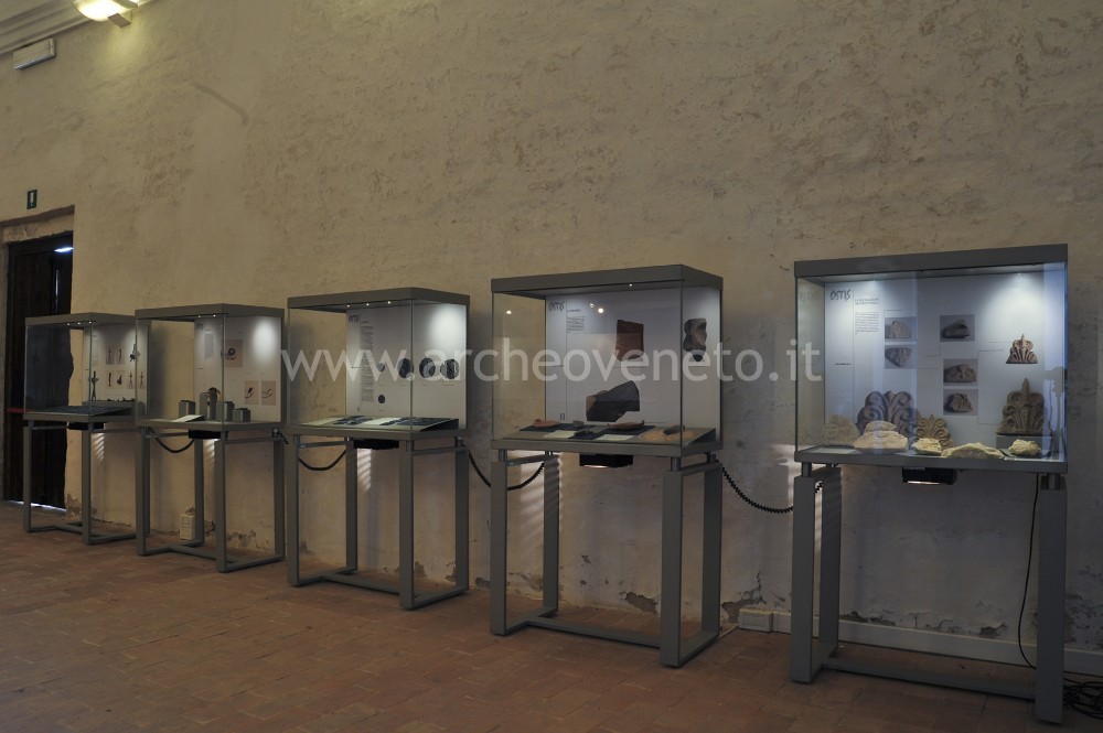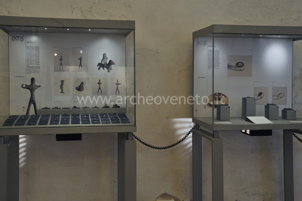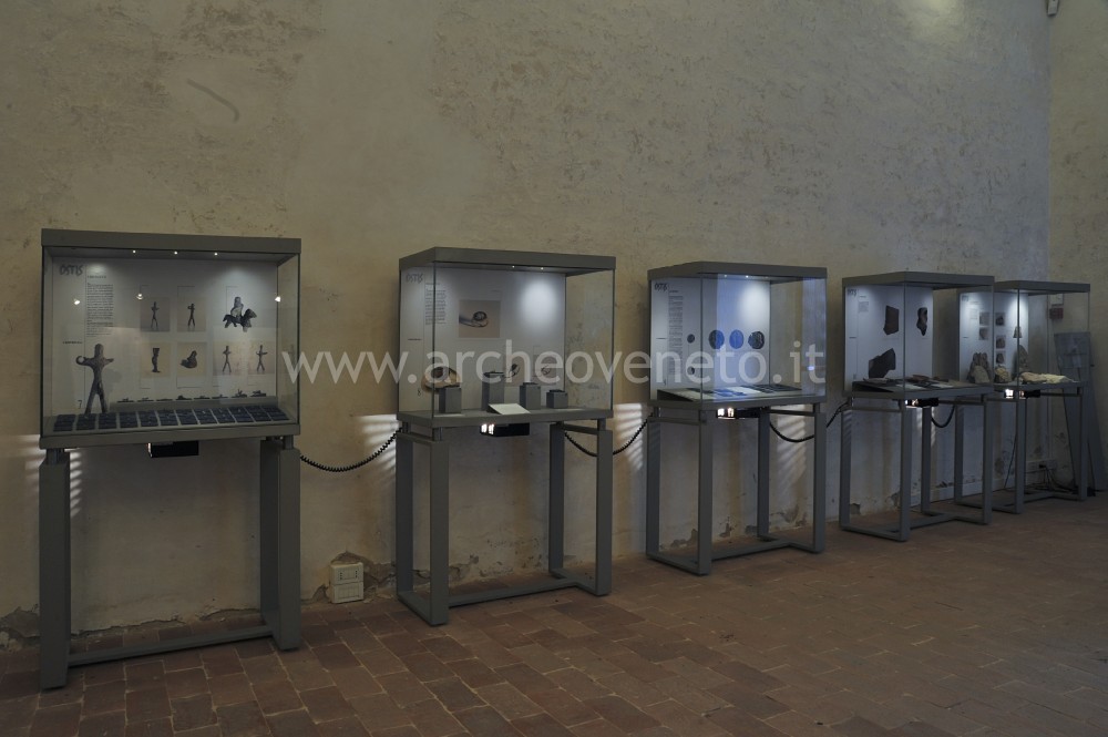 All'interno di cinque vetrine sulla destra sono esposti i reperti rinvenuti durante gli scavi del 1990-93 del Santuario Paleoveneto di Lova.