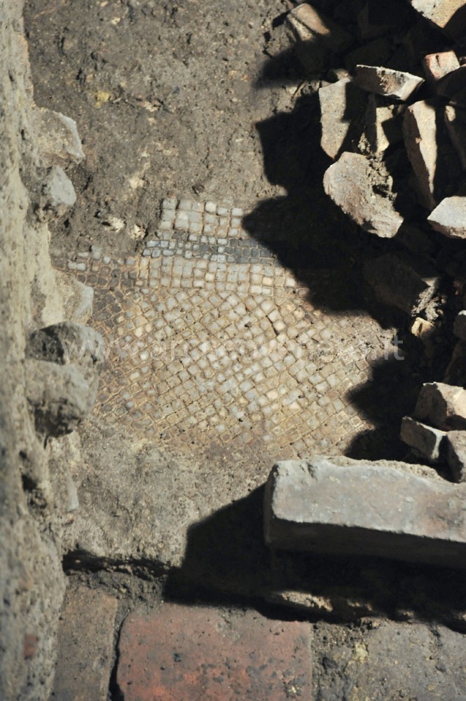 I resti romani rinvenuti in situ nel corso degli scavi condotti sul finire del secolo scorso sono visibili da una passerella all’estremità occidentale della Galleria Sud, nei pressi del “Cantinone”, a circa 7 metri di profondità rispetto alla quota di calpestio del soprastante Palazzo della Ragione. Si tratta di una piccola porzione di edificio domestico di età imperiale, costruito a sua volta sopra strutture più antiche, al quale appartengono murature con tracce di affreschi parietali e un frammento di mosaico pavimentale bianco e nero, conservatosi sotto il crollo della copertura in tegole e coppi. Tale crollo è rimasto volutamente in posto, al di sopra del pavimento musivo, per rendere l’idea della distruzione dell’edificio, avvenuta a causa di un incendio successivo all’abbandono, e dei livelli di interro dell’edificio romano su cui si impostò in seguito la città medievale.