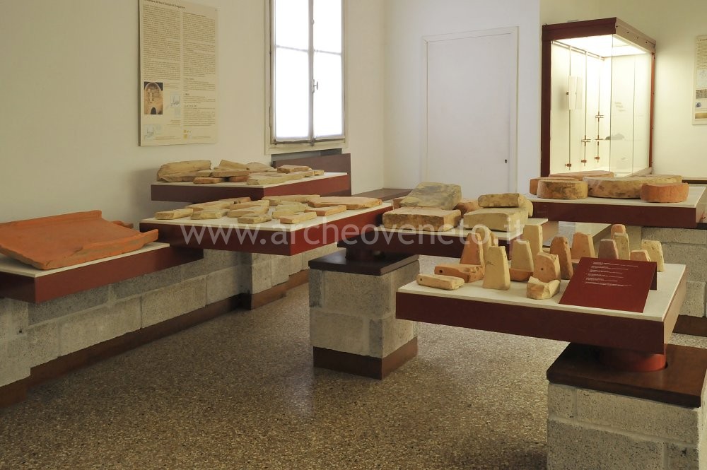 Al centro della sala troneggia un’esposizione di materiali fittili provenienti da un impianto produttivo romano, destinato alla produzione di laterizi e terrecotte, ubicato presso la località di San Giorgio di Angarano.